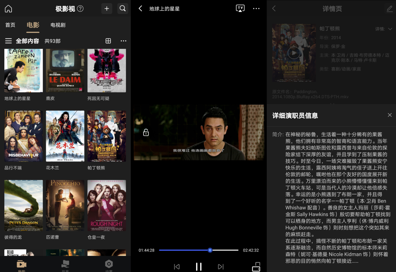 它也是我见过刮削电影资源最快的NAS软件,而且信息匹配非常的强悍,播放电影也特别方便: