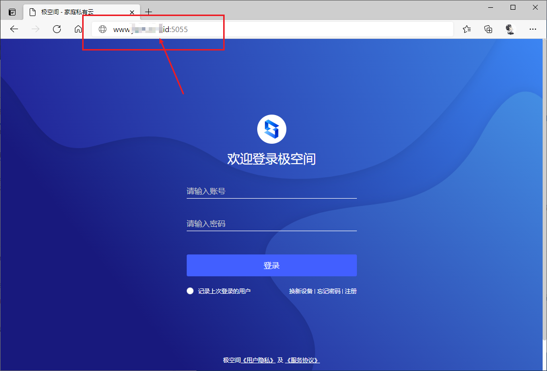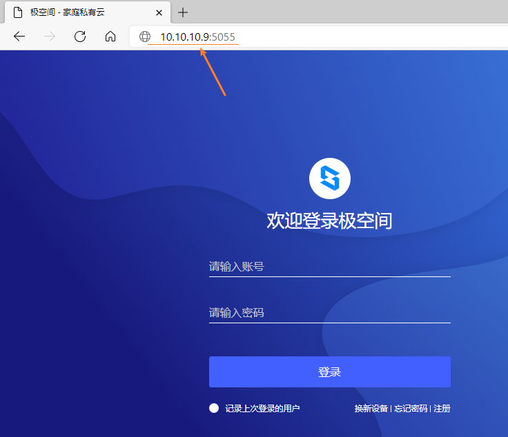 1、我们在电脑的浏览输入,即可进入到极空间的网络访问页面: