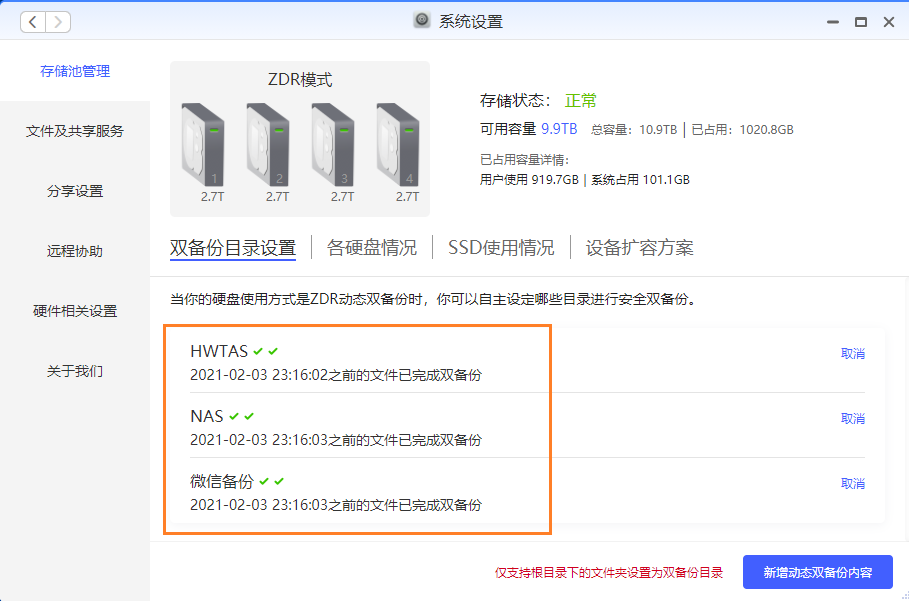 4、既然有这么适合家用的备份方式,我肯定要试一试,索性就组ZDR动态双备份模式: