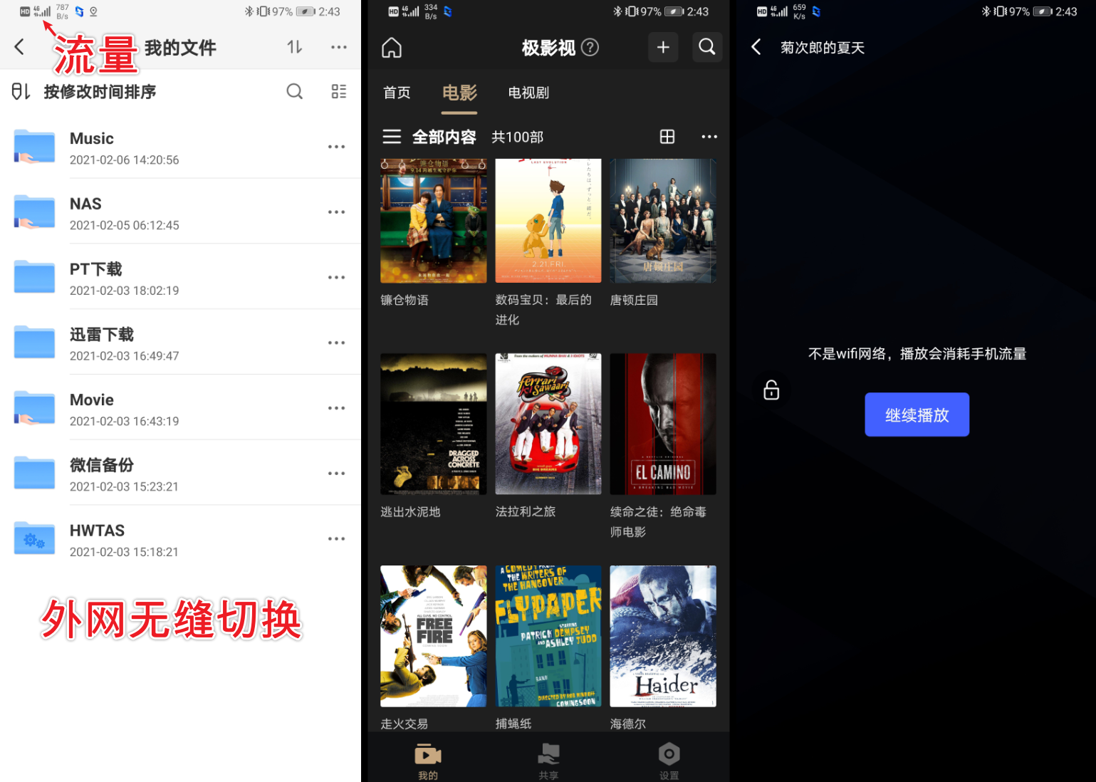它由于是采用的手机号绑定的方案,所以,只需无需任何设置,直接切换到外网,依旧能正常访问NAS!