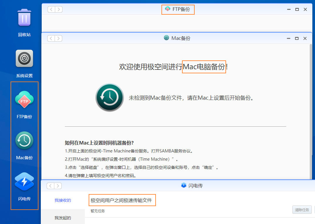 我还有FTP备份、Mac备份、闪电传等功能没有细说: