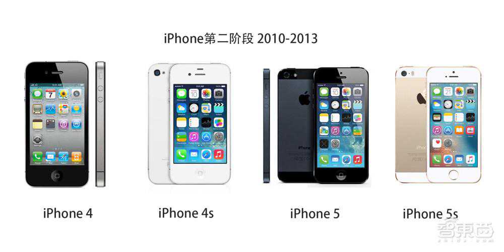 第二阶段的iPhoneID来到了直角边框时代,从iPhone4到5s,持续4年,2010-2013。