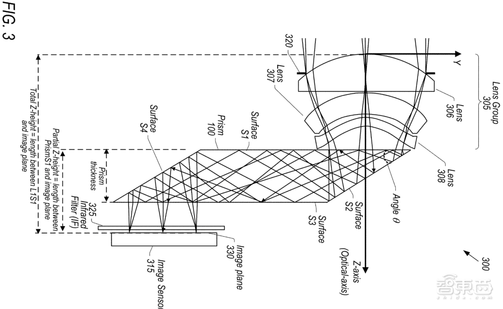 二、不拘一格的苹果思路:单棱镜潜望长焦镜头再说下苹果所采用的这个单棱镜潜望长焦镜头技术思路,非常天才的设计,原始创意来自一位日本光学工程师,不过专利早已被苹果拿下,可见苹果公司在盯上一个方向的时候,在他出招之前会提前很久开始布局和方案选型比较。