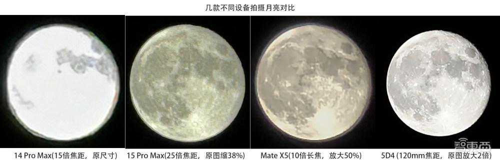 这就是iPhone15ProMax和其它几款设备拍出的月亮效果: