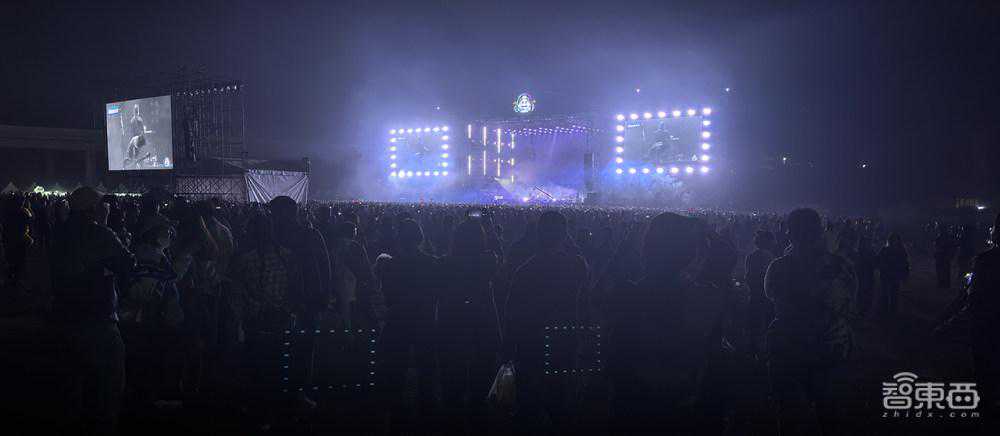 这是一个音乐节现场比较极端的场景,在一个露天的公园场地,我几乎是站在人群的最后了,用长焦镜头夸张的极限变焦能力,仍然能抓到舞台中乐队表演的画面(未裁切)。
