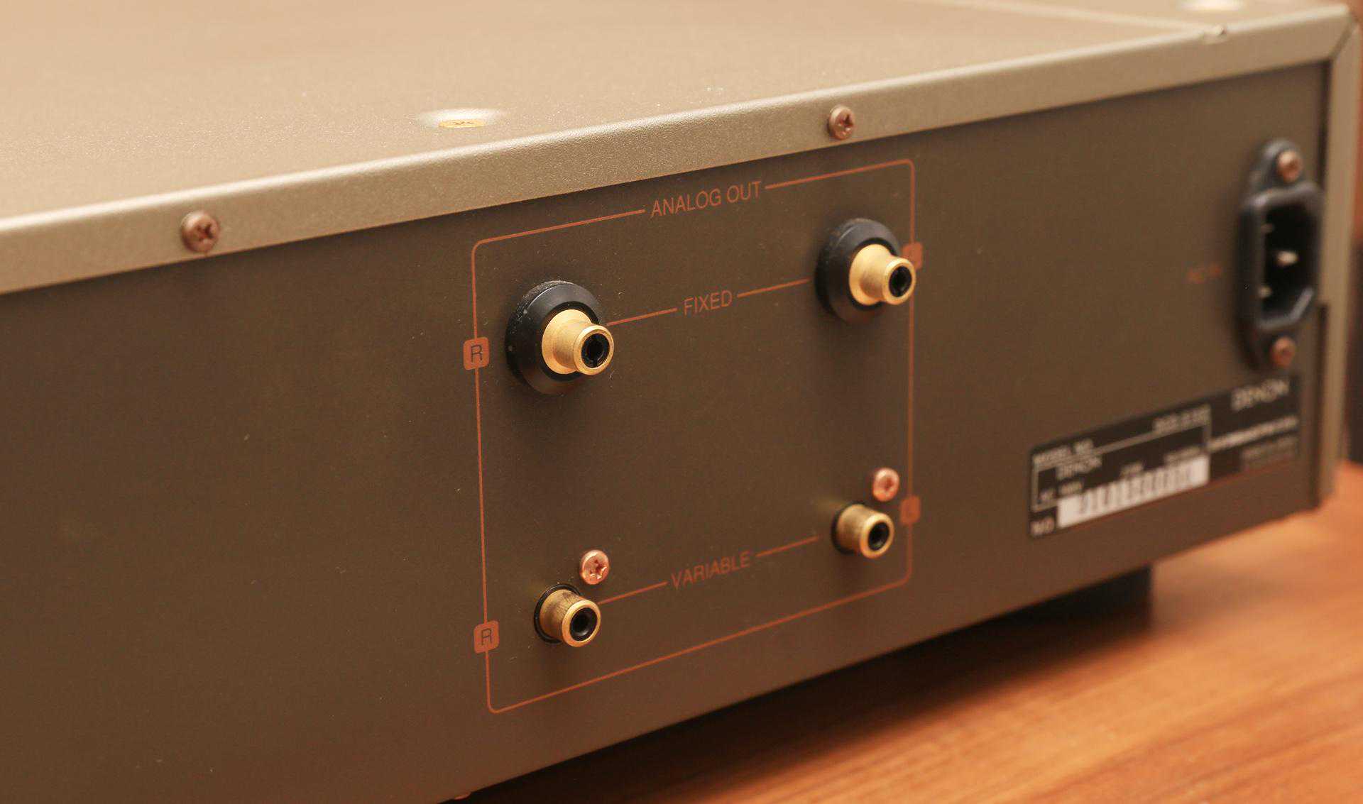 S10III背面,从左到右分别为同轴输出/光纤输出、同轴输入/光纤输入(可作为解码器使用)、固定输出、可变输出、电源接口。