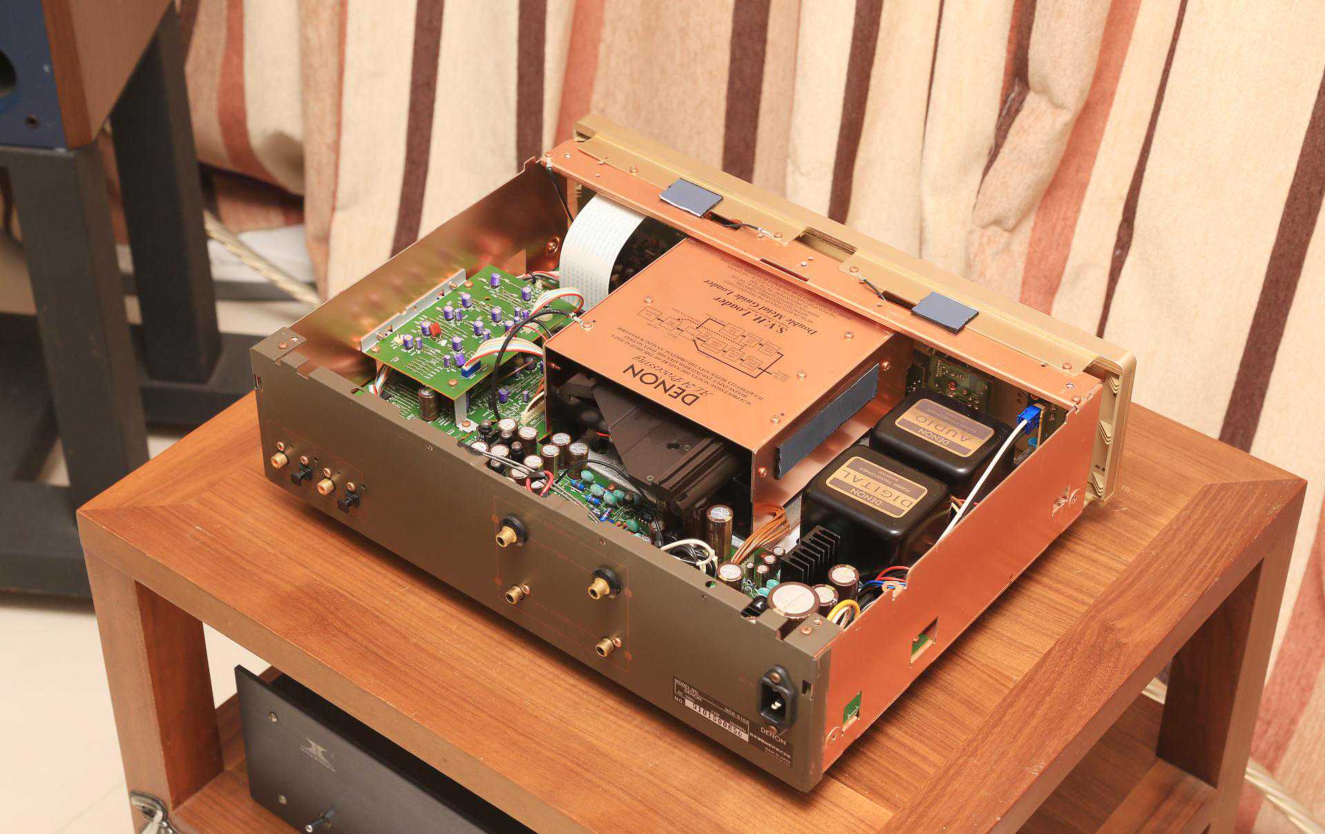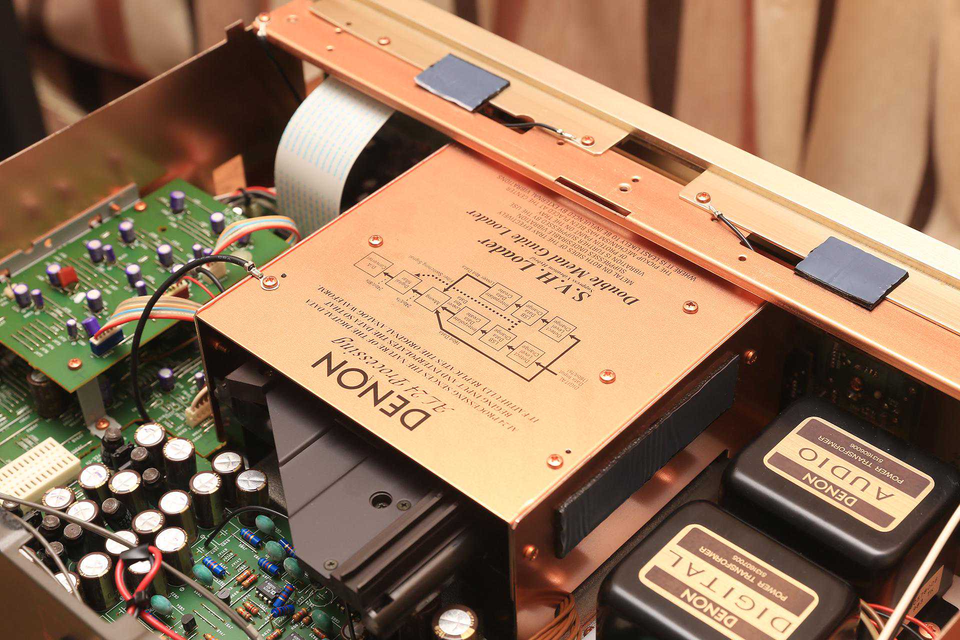 移开顶盖之后,可以看到天龙S10III内部的用料与做工,可以说是非常的规整,甚有金碧辉煌之感,这也是高端日系机子的特色了,如我拥有的先锋PD-T09、雅马哈CD-S2000等,其内部均十分的赏心悦目。当然内部镀铜不仅仅只是为了好看而已,更重要的是起到屏蔽的作用。