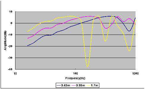 两者距离差为0.46m,对应到100Hz(L=3.43m),约为0.134倍的波长,与原本预期的0.5倍波长有落差。