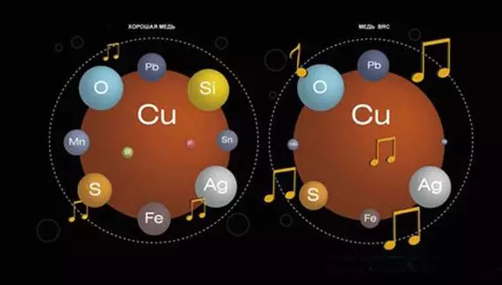 切尔诺夫的线材使用乌拉尔地区铜矿的原材料精炼而成,切尔诺夫将其命名为BRC(平衡式精炼导体),以自己独到的技术重排铜材里的元素组合,不同于其它铜材提炼的导体,图右为BRC导体