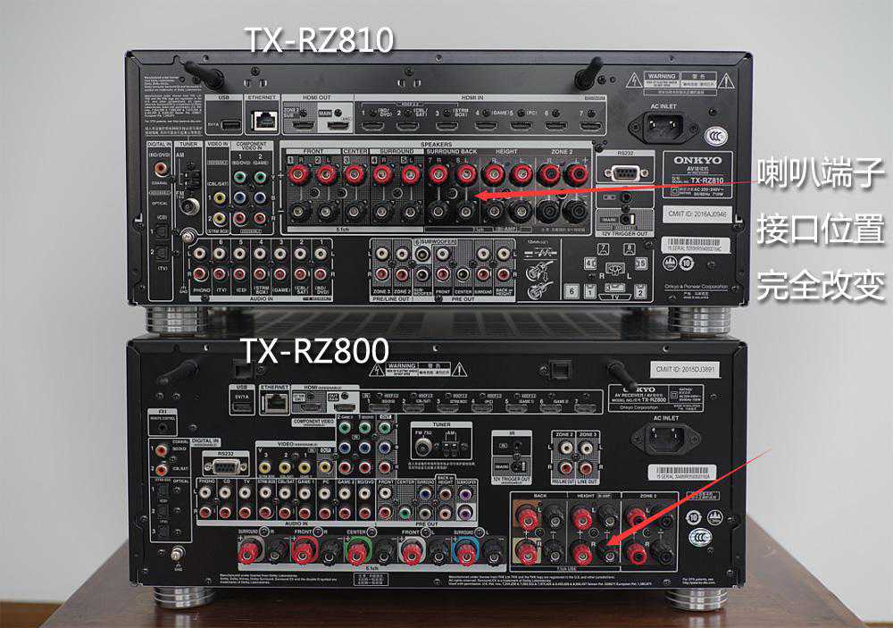 不过从上面看就能明显看出来新的TX-RZ810明显要短一截。