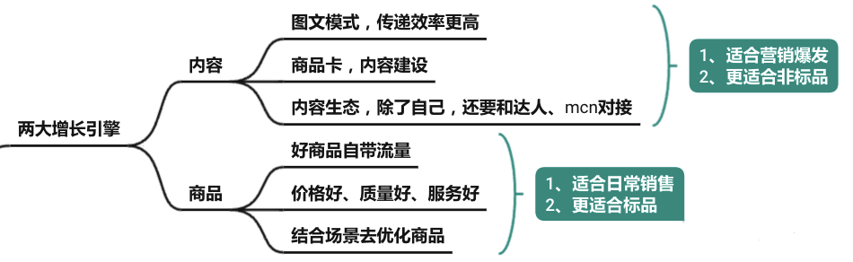 3、两大增长引擎,内容+商品。“商品”地位提升,与“内容”并驾齐驱。