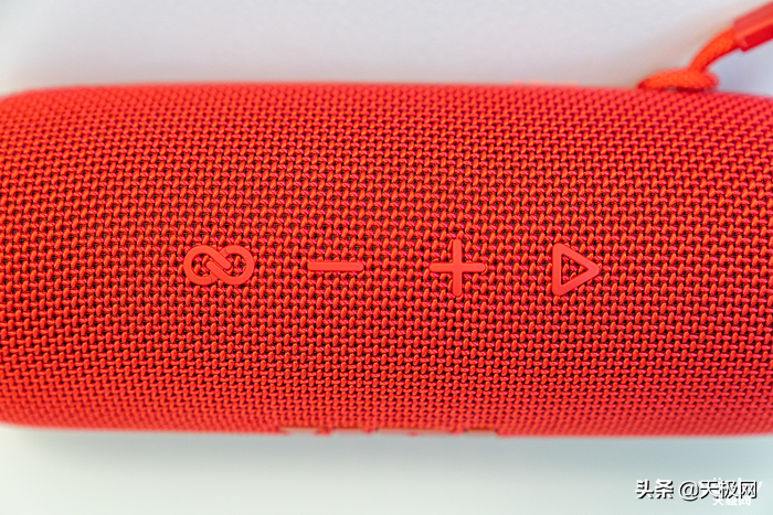 耐用性方面FLIP6具有全天候IP67级防护,配合耐用织物网罩和兼顾材质机身,能在沙尘、大雨,甚至完全浸没于水中的场景中使用。当然对于我们普通用户来说,这些特性主要还是在于音箱弄脏后可以进行水洗。另外,两侧防摔缓冲结构能防止音箱跌落时受损,同时还能提升音箱颜值,展现出强烈的视觉冲击感。