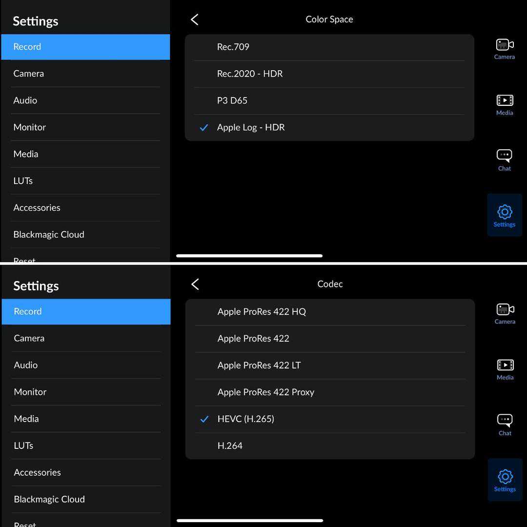 BlackmagicCam支持H265编码的AppleLog记录
