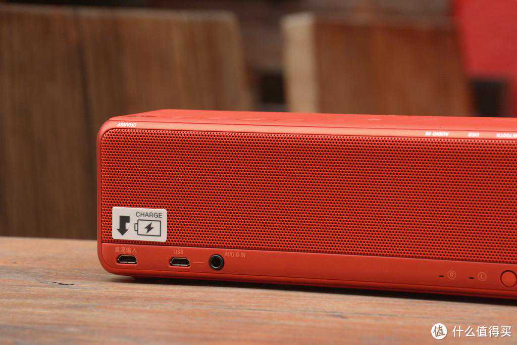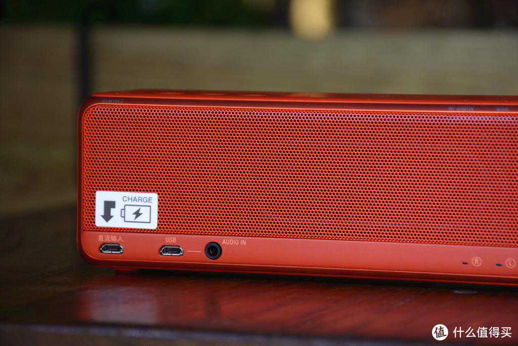 在音箱背面的左侧依次是充电接口、USB接口、3.5mm音频接口。