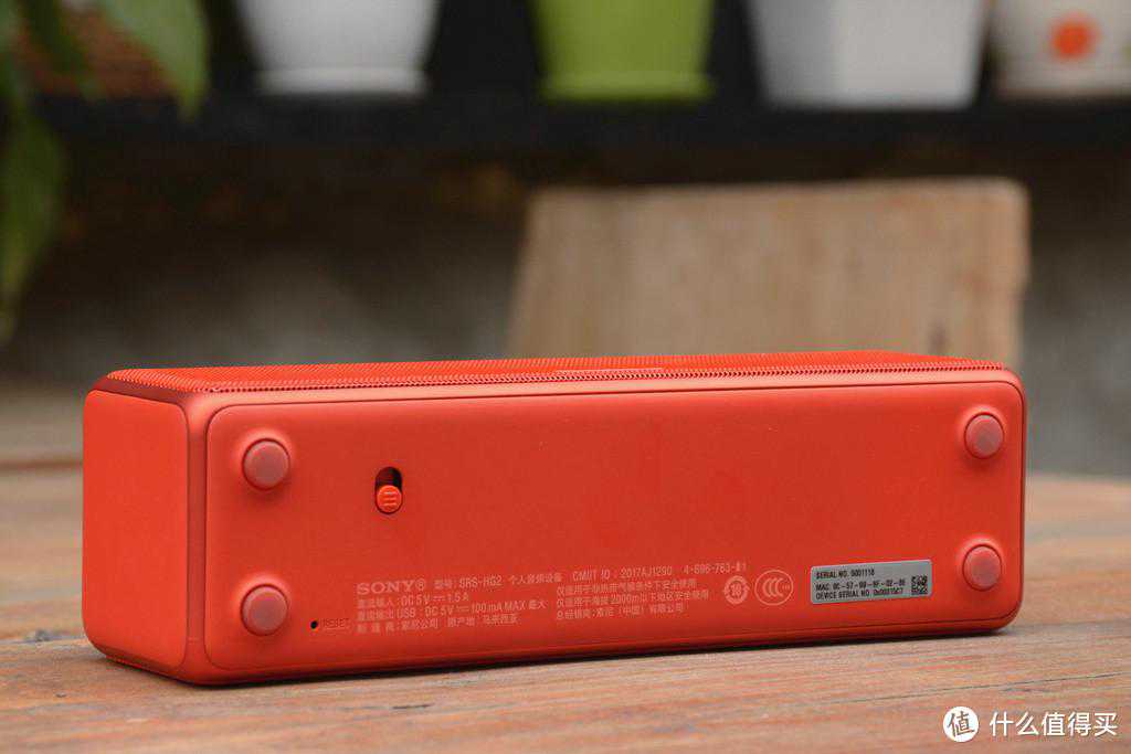 它的全称是索尼蓝牙音箱SRS-HG2,当年有5种配色:炭黑、朱砂红、翠绿、波尔多红和柠檬黄。朱砂红款比较好看,其它几个颜色里就数翠绿好看了,黑色别考虑。极简设计,外观方方正正,中规中矩,看上去虽不惊艳,但是圆润的边角设计和红色的搭配让其看起来有了几分活力。整个机身的尺寸大概为204mmx62mmx60mm,体积足够小巧,虽然出门也能轻松携带,but,谁出门带这个玩意,还是放桌子上听个响或给孩子听网课时用更香。