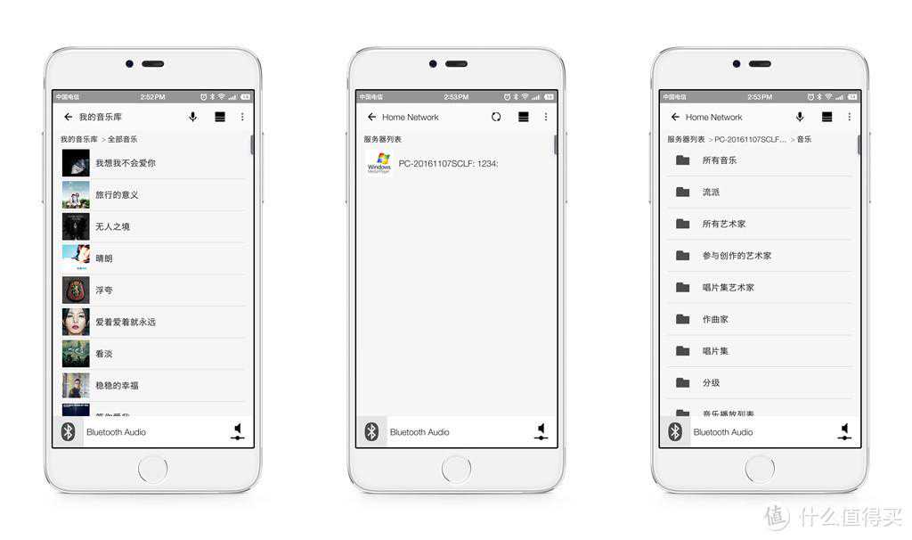 它不仅可以直接通过Wi-Fi网络播放手机里的音乐内容,而且还可以直接通过HomeNetwork局域网直接播放家里电脑里的音乐内容,这个比较有意思。