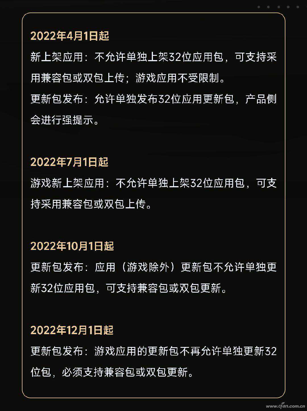 需要注意的是,在TCS21时代,只有Cortex-A710同时支持Aarch32和Aarch64,运行老旧32位应用时存在功耗高的问题。在TCS22时代,Cortex-A715不再支持Aarch32,而是让Cortex-A510Refresh可以兼容Aarch32,但仅限特定的选择中。根据金标联盟最新发布的时间表,从今年12月起主流应用商店就将全面过渡到64位应用,游戏更新也不再允许单独更新32位包,估计到了TCS23时代,ARM将在核心IP层面彻底放弃Aarch32。