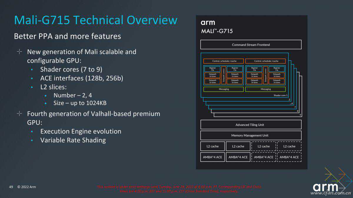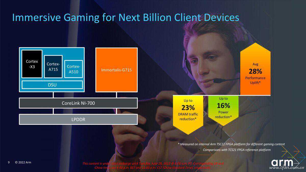 根据ARM的官方数据显示,TCS22(1+3+4+Mali-G715)的游戏性能较之上代可以提升28%,值得期待。