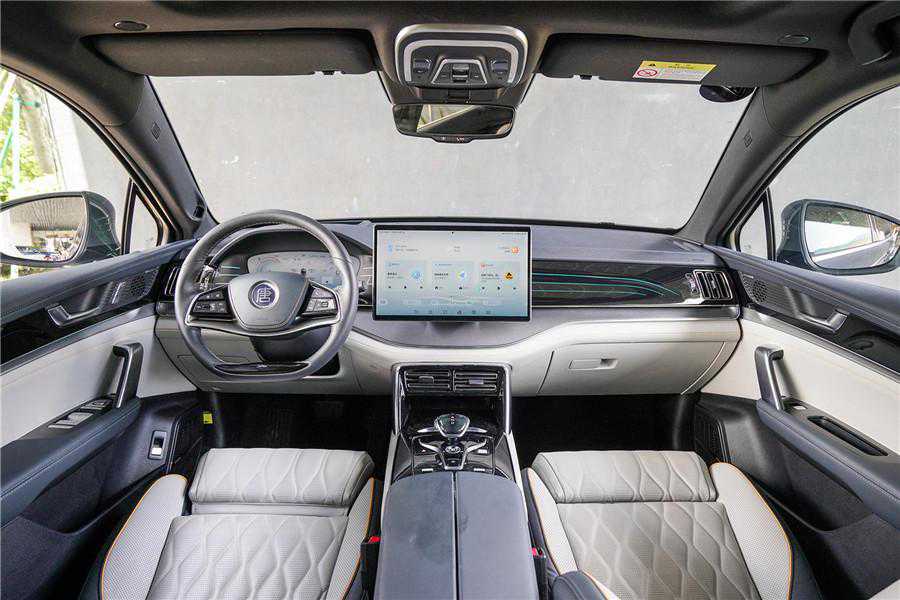 来到车内,比亚迪唐DM-p的设计风格偏向于豪华属性,内饰用料上乘,而且配置很丰富。如果是高配版本,比亚迪唐DM-p还配备了电动调节方向盘、方向盘加热、前排座椅腿托等高阶配置。即使是中低配车型,前排座椅加热/通风、12.3英寸全液晶仪表、15.6英寸中控触摸屏、多色内饰氛围灯也能体现出比亚迪唐DM-p的档次感。