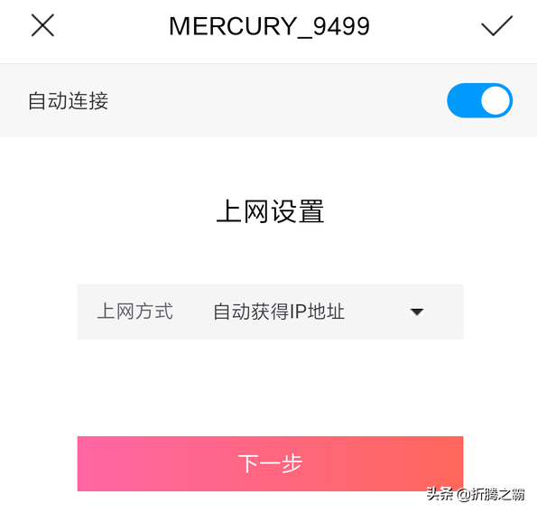 第六步:设置上网方式,因为我是光猫内置拨号,所以默认自动获取ip地址即可。