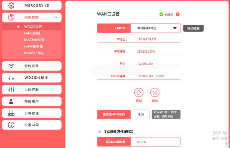 2、wan口设置、lan口设置、mac地址设置、dhcp服务器、ip与mac绑定