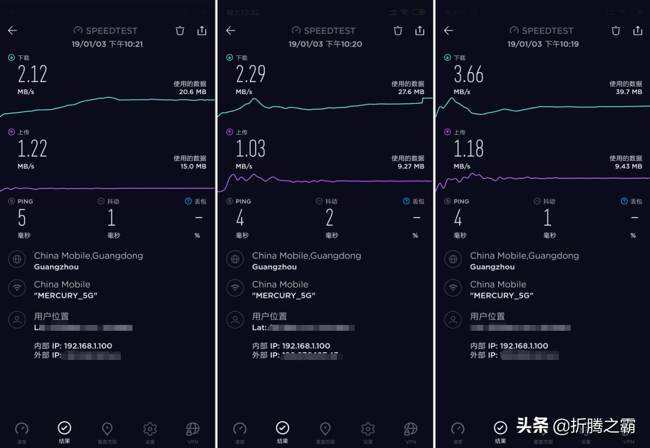 Speedtest用小米8手机连续测试三次,结果得出:D19G是D128G的2倍下载速度。