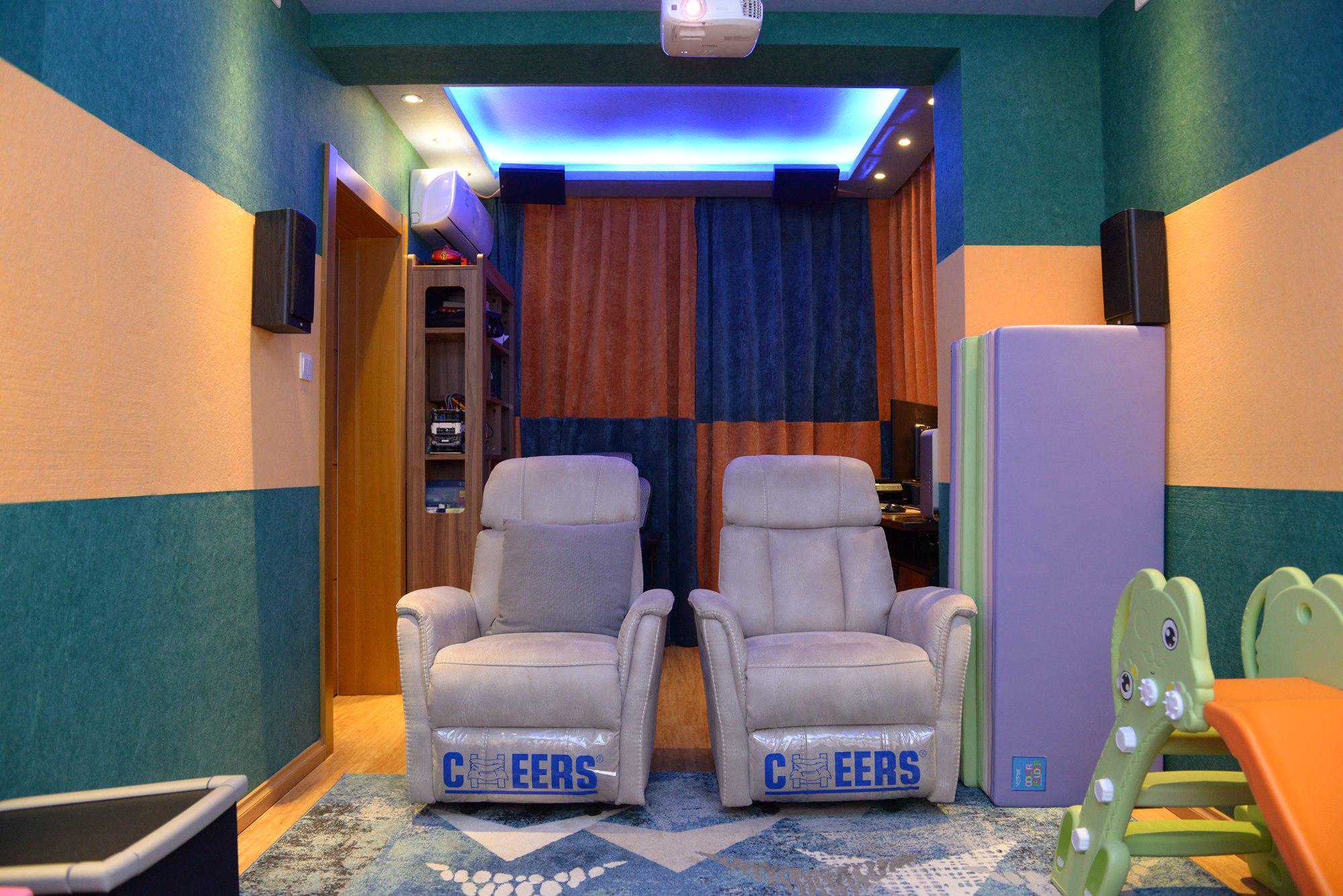 一般能够配置影音室的朋友,基本对家庭影院都有较深的了解了。设备的选购和方案不是难点,难点是影音室的装修和声学的处理。楼主虽然弄过,但也不专业就不指导了。介绍一些由于不专业所以在装修影音室发生的一些遗憾吧,给大家提个醒。(1)首先是如果房间的宽度不足的时候,主音箱和中置音箱最好镶嵌入墙壁,使用透声幕布来解决。楼主由于当时不知道,挂完幕布左右宽度放不下主音箱了,最后主音箱只能上天了,一大败笔;