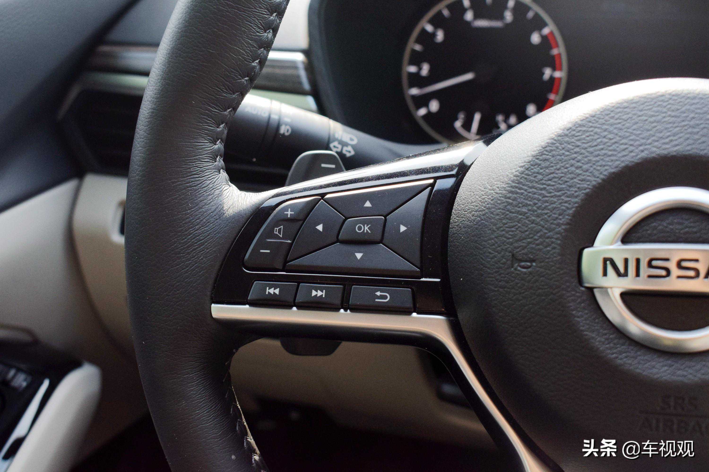 方向盘左侧区有上下两排功能键,驾车的时候就能控制,下方的按键小了一些。