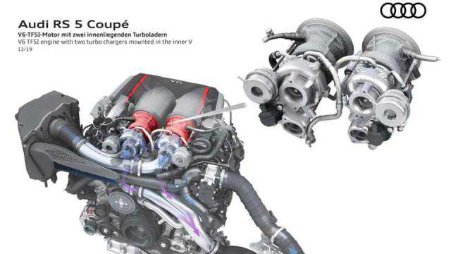 在保持相同84.5毫米缸径的情况下,改变活塞行程为89毫米,实现了排量的100cc下降,这样一来就提升了发动机的冲程比与压缩比。得益于EA839本身比较灵活的HOTV增压系统布局设计,存在于V型气缸夹角之间的涡轮增压器可以实现灵活的单双调整(对应的双涡轮设置,是奥迪RS系列和部分保时捷车型,用的2.9T双涡轮这台发动机)。