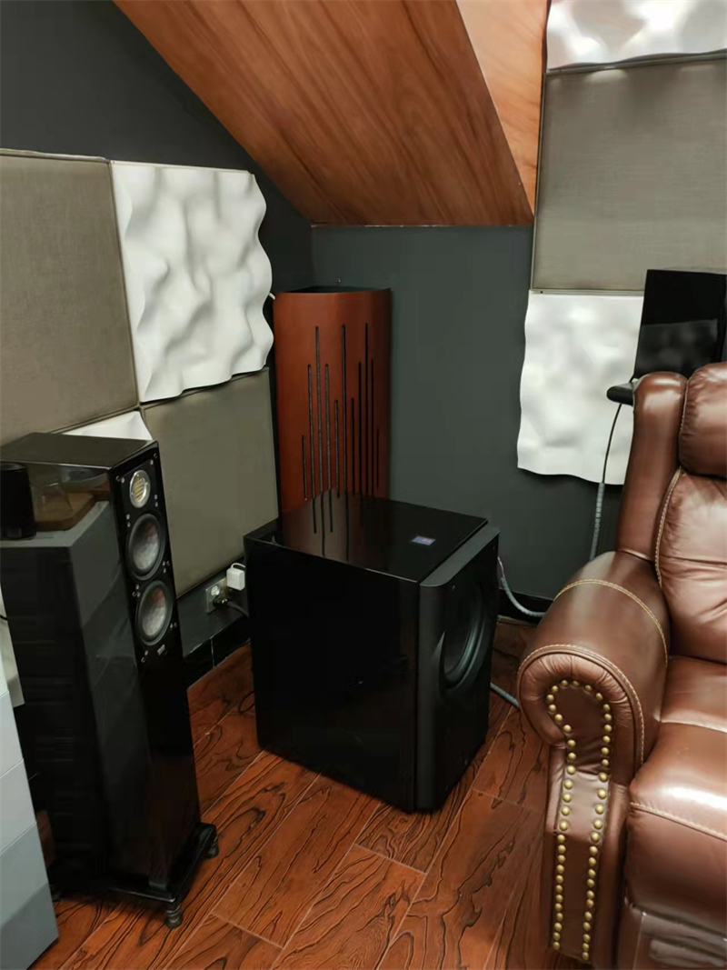 总算可以声压平衡,但这样摆放又导致另一种尴尬情况:三台巨炮推动的空气总量是一台双12英寸低音炮靠功率无法补足的,听感上平衡了,但体感不平衡,这也是很多老烧建议一定用同品牌低音炮的原因,不过勉强是可以坐下来好好听了。