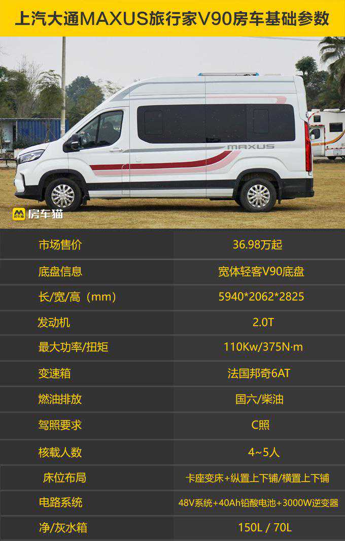 【总结】上汽大通MAXUS旅行家V90是目前市场上空间最大的B型房车,“车子”部分动力强劲、智能驾驶辅助系统完善,“房子”部分布局经典、生活配置全面,是值得推荐的B型房车。目前,这款车的市场指导价为36.98万起。