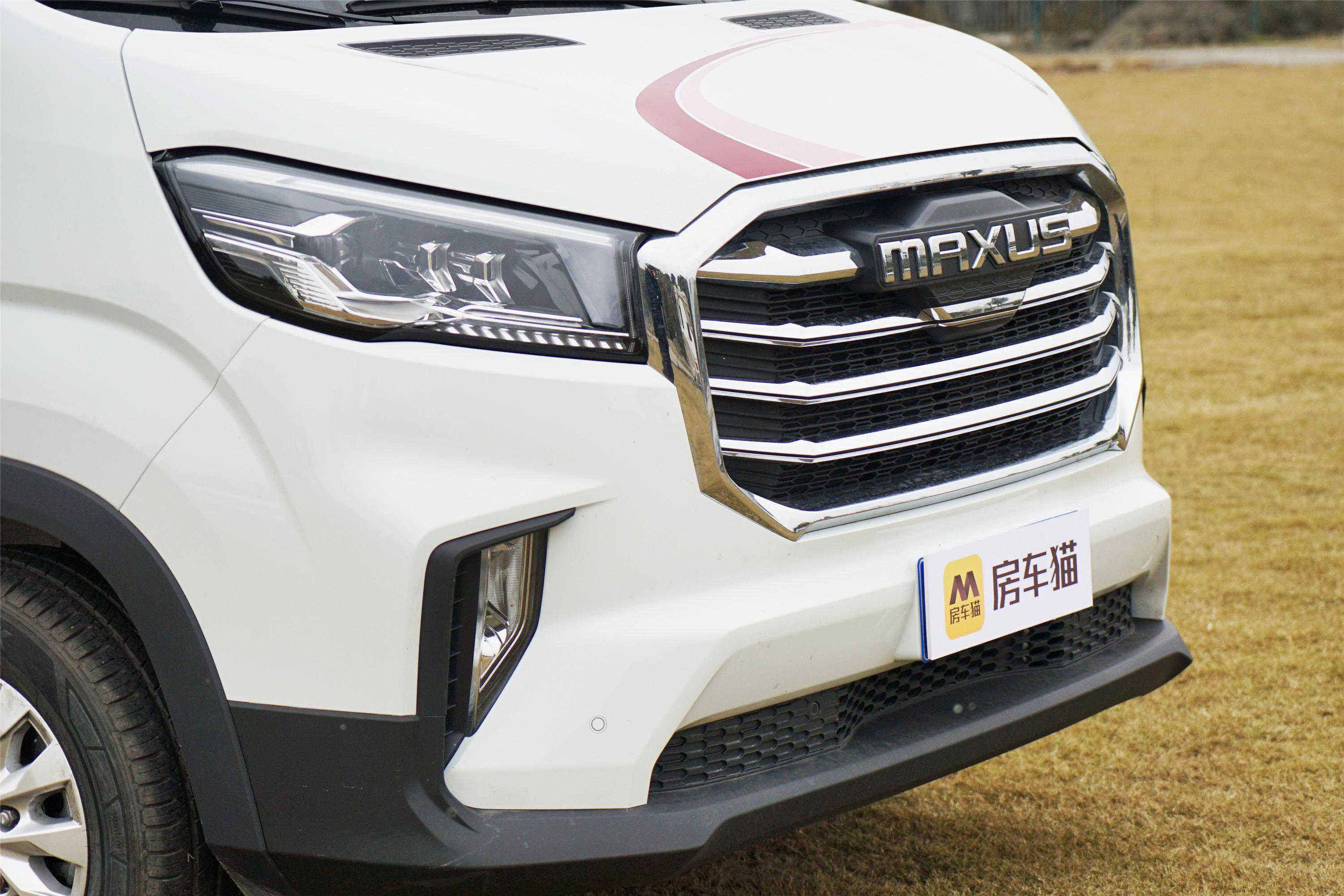 “MAXUS”家族化车标与四横幅镀铬前格栅搭配,更显豪华感。前LED大灯采用扁平化设计,与前格栅融为一体,更显精致。