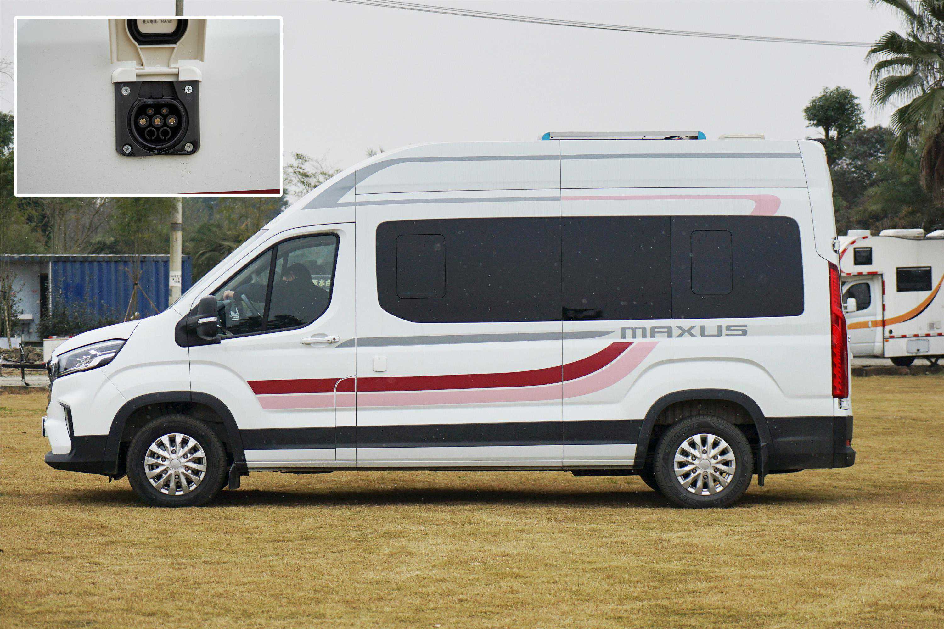 车身左侧的功能非常简单,配备了智能市电口,可接市电或者新能源充电桩充电。