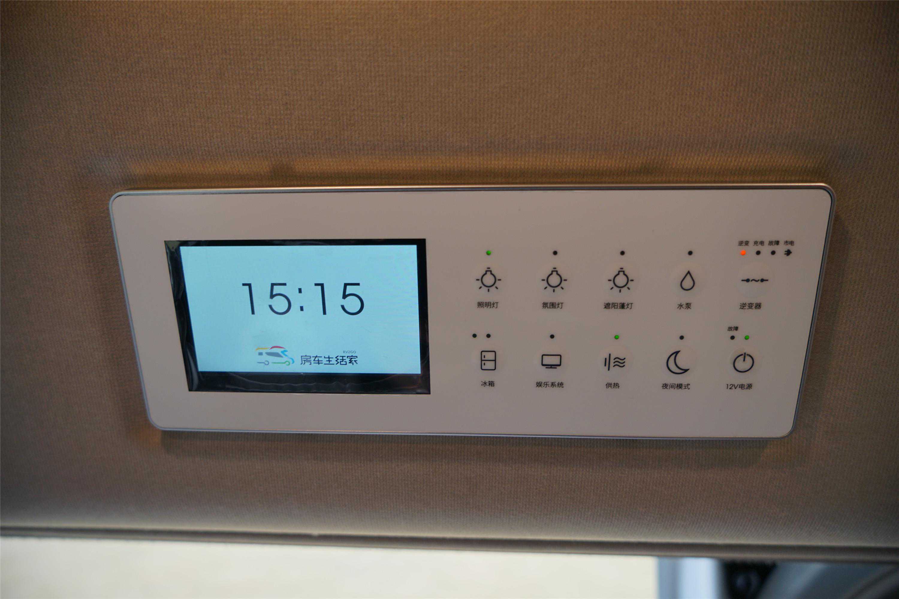 房车的能源系统主要体现在水电配置上,这也是核心功能。上汽大通MAXUS旅行家V90选用智能化控制屏,具有触屏及按键两种操作方式,可以集中监测水路、电路、供热等信息,并且自带故障检测、异常提醒功能。