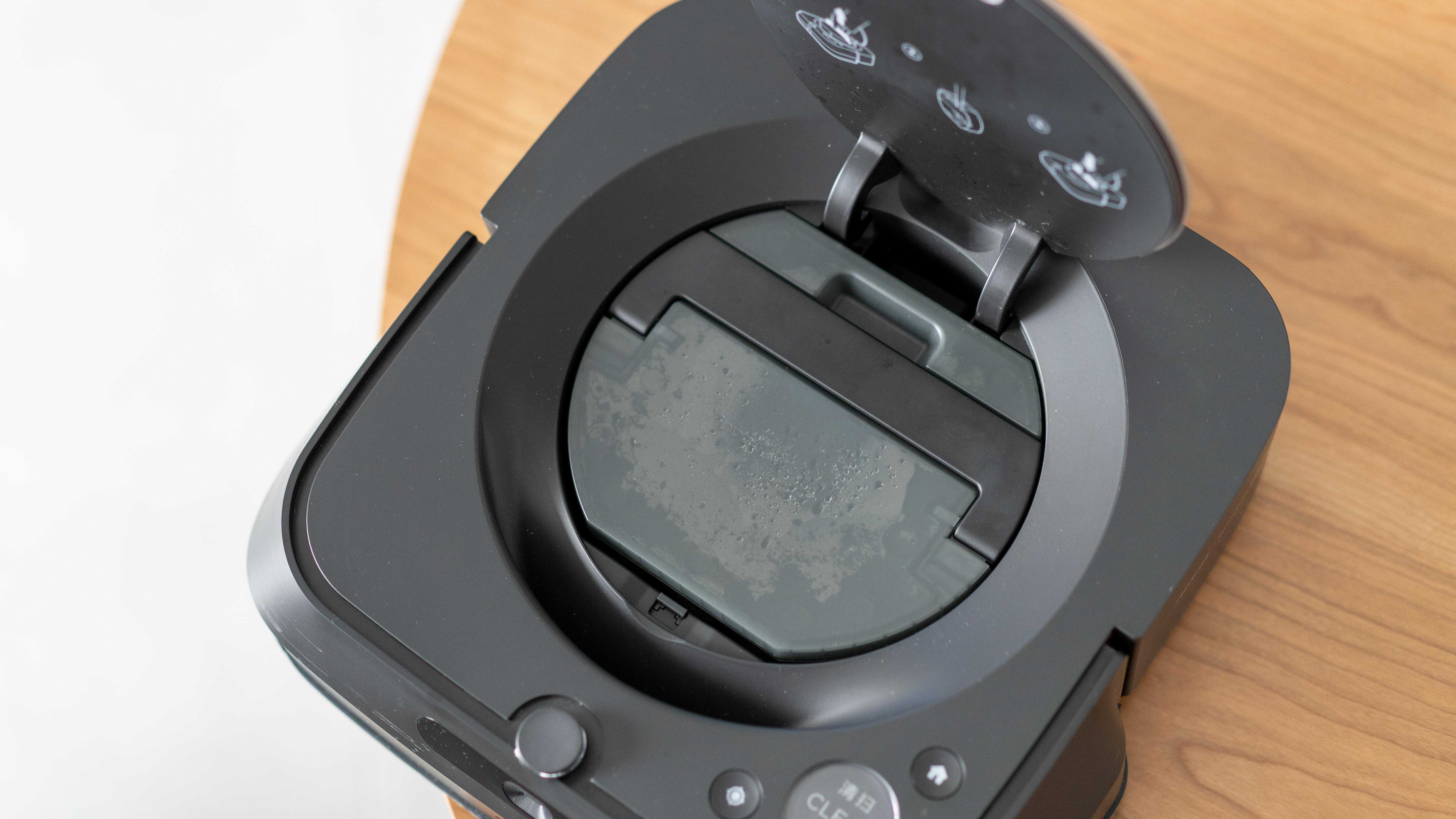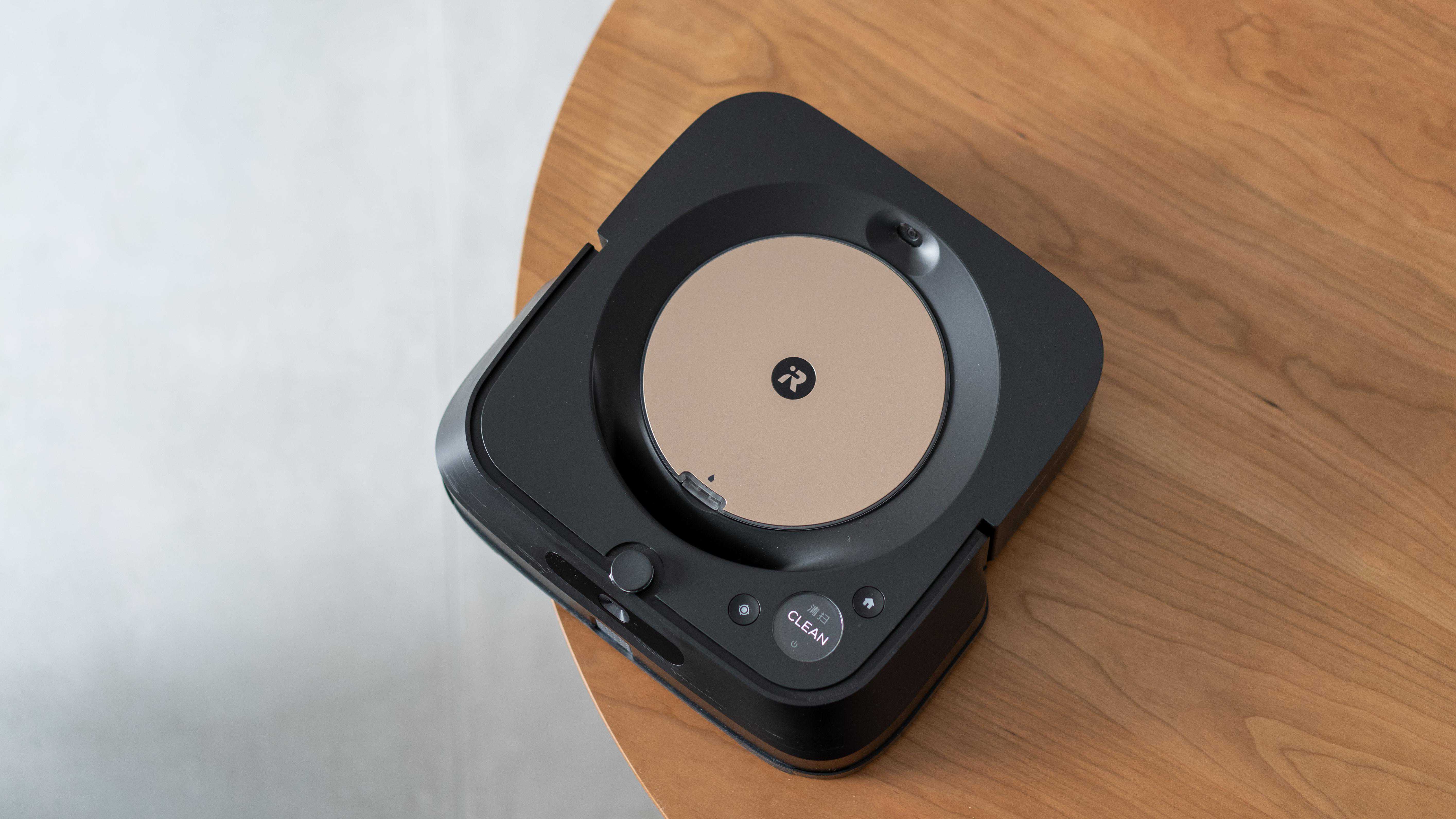 中间的圆形盖板是可以打开的,在其下方放置的,则是iRobotBraavajetm6擦地机器人的核心零部件之一可拆卸水箱,水箱容积为450mL,注水口在尾部,旋转即可打开,装满水足以应付绝大多数户型的常规清洁!