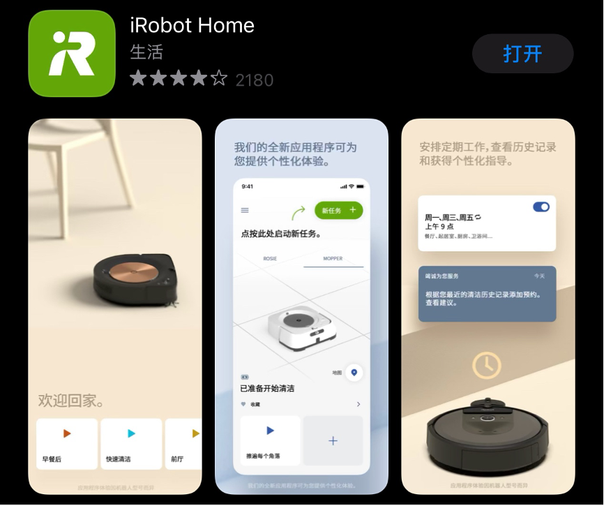在手机应用市场中搜索“iRobot”或扫描说明书中提供的二维码,下载iRobotHomeApp,按照引导进行设置和连接,整个过程非常的简单,设置完成后,我们就可以在手机端实现对iRobotBraavajetm6擦地机器人的远程控制了。这里提醒一句,建议APP设置网络时选择2.4G网络,它的穿透性更强,连接更稳定。