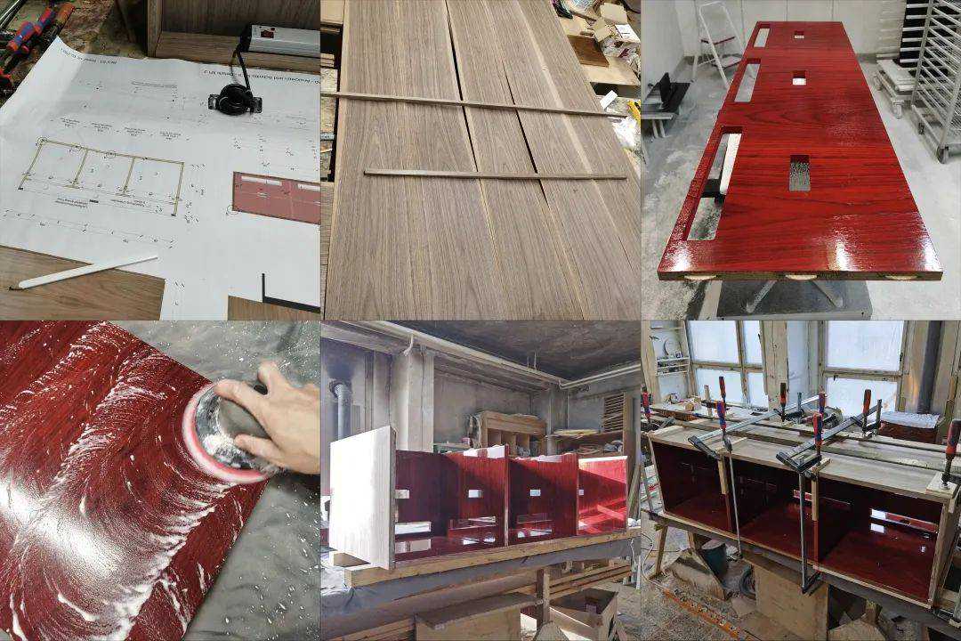 “除非能与专业产品相媲美,否则我不会建造任何东西。我有点完美主义,”Hakiel承认道。柜子内部涂有红色抛光漆,Hakiel在几周时间里进行了抛光,直到它以他设想的方式闪耀。“我学到了很多东西。有时候甚至令人沮丧。这个过程向我展示了理解自己能走多远的重要性。我知道理论上可能有什么,但这个柜子的应用帮助我理解了在现场如何真正完成工作以实现更好的产品。