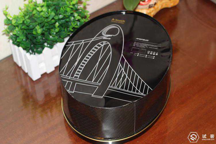 包装盒采用铁皮金属盒,相对于普遍的硬纸盒有些特别,铁皮金属盒有分量、结实,能更有效地避免运输碰撞所造成的损坏,盒子内部也有厚实的硬塑料包裹着,盒子顶盖铺有海绵衬垫,包装相当扎实。盒子的背面图案是阿隆索A-touch音响的创意灵感--广州猎德大桥。