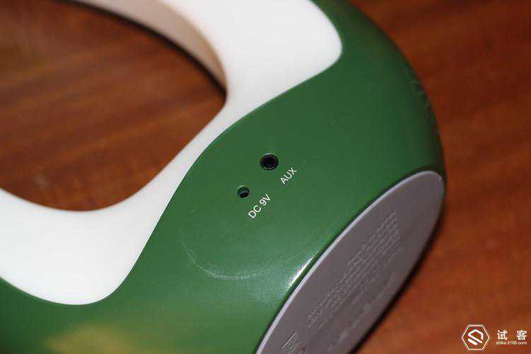 在音箱背部分别是3.5MM音频插口和电源接口,除了蓝牙连接方式,音箱还可以通过3.5MM音频插口链接台式电脑、平板、音乐播放器等各种设备,音箱并没有内置电池,外出或室外使用有点不方便。