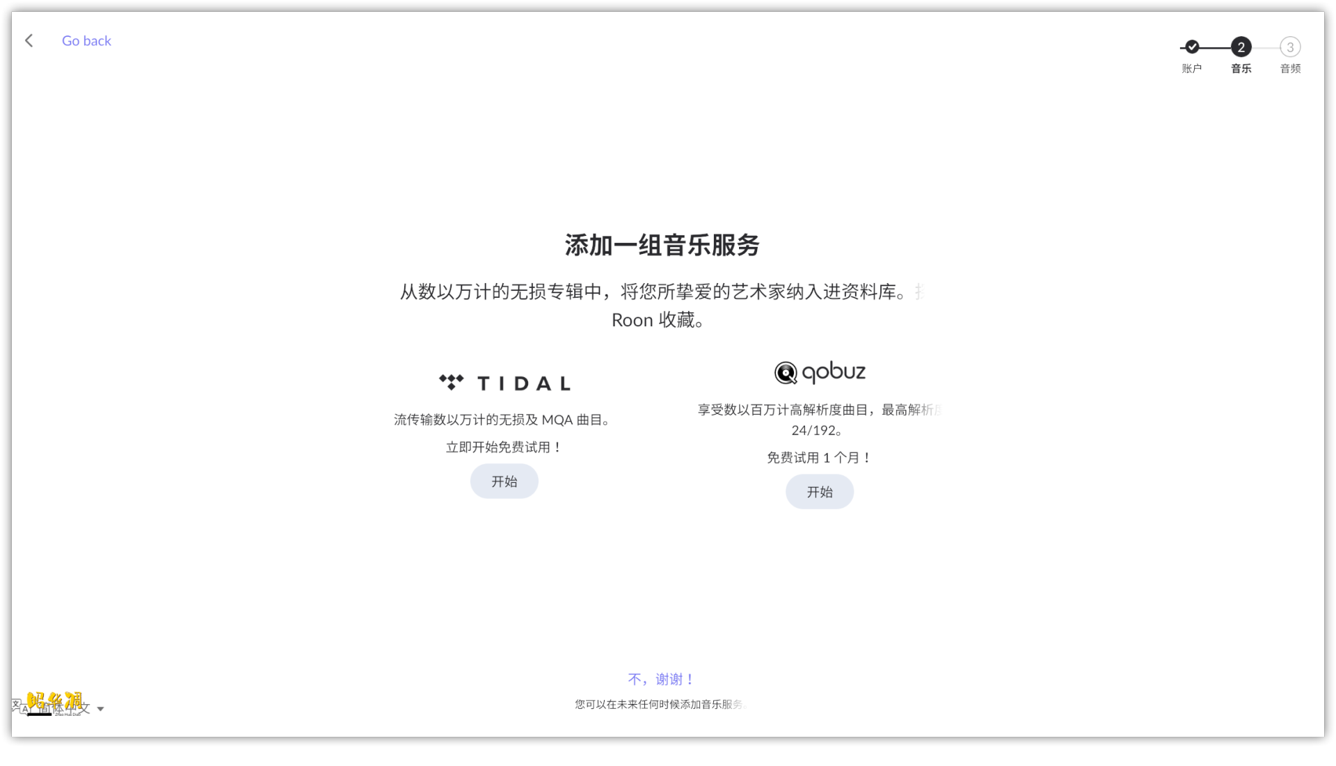 roon不是免费软件,包年价格118.8美刀(折合单月价格9.9)、单月付费价格为12.99美刀、一次性买断则是699.99美刀。我们可以先点右上方的试用链接体验14天。