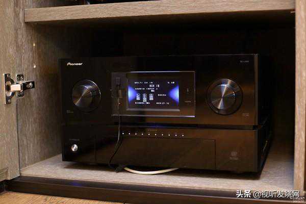除了聆听CD以外,用家也时常需要使用其他的影音器材,例如蓝光播放器、环绕扩大机或是近年很夯的音乐网络串流播放器等等,日月音响会将这类不需要额外散热空间的影音器材规划在隐藏机柜中,线路都做在机柜后方,如果不说是看不出来的,进一步维持更好的家居外观。从此处机柜中可以看到有Crestron多媒体控制的主机、Oppo蓝光播放器、Innous音乐服务器、Pioneer多声道AV环绕扩大机。