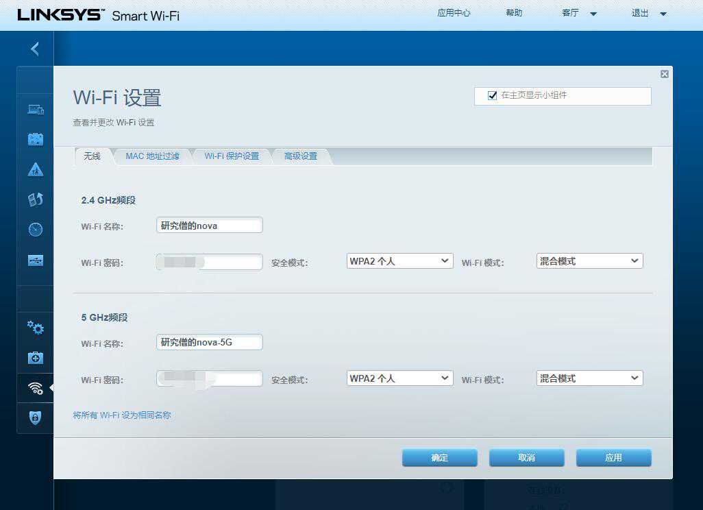 虽然MX10600默认开启的是2.4GHz和5GHz频段合一,但我建议大家还是考虑分频,因为智能家庭目前主要使用2.4GHz,而手机、电脑等高级终端则使用5GHz频段,便于分网搭配,干活不累。需要注意的是只有网页端能够分网,手机端是不能够操作的。