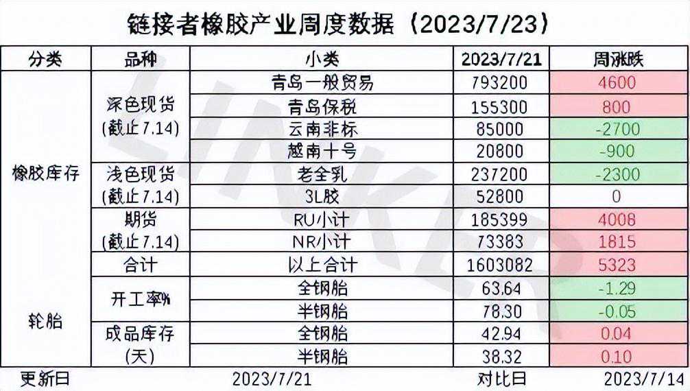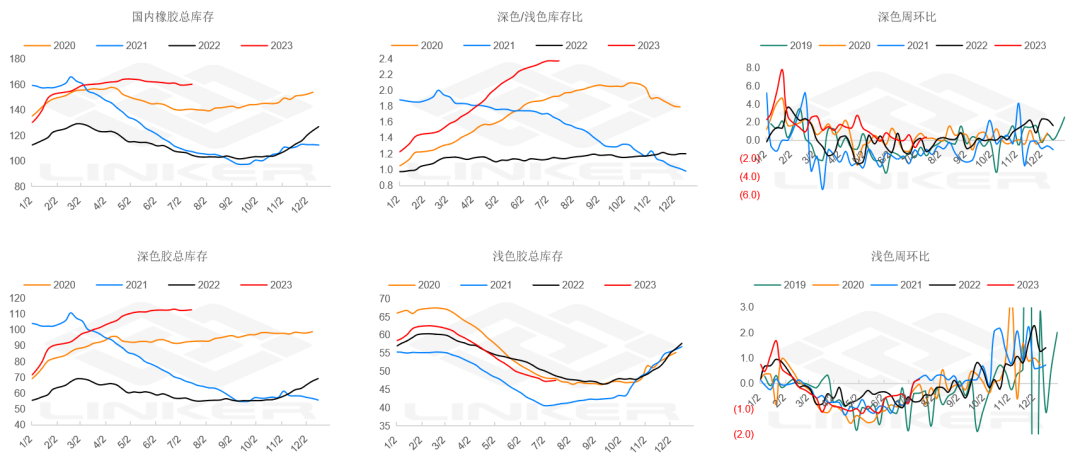 上周天胶整体微累库(+5300吨),深色+3600吨,浅色+1700吨