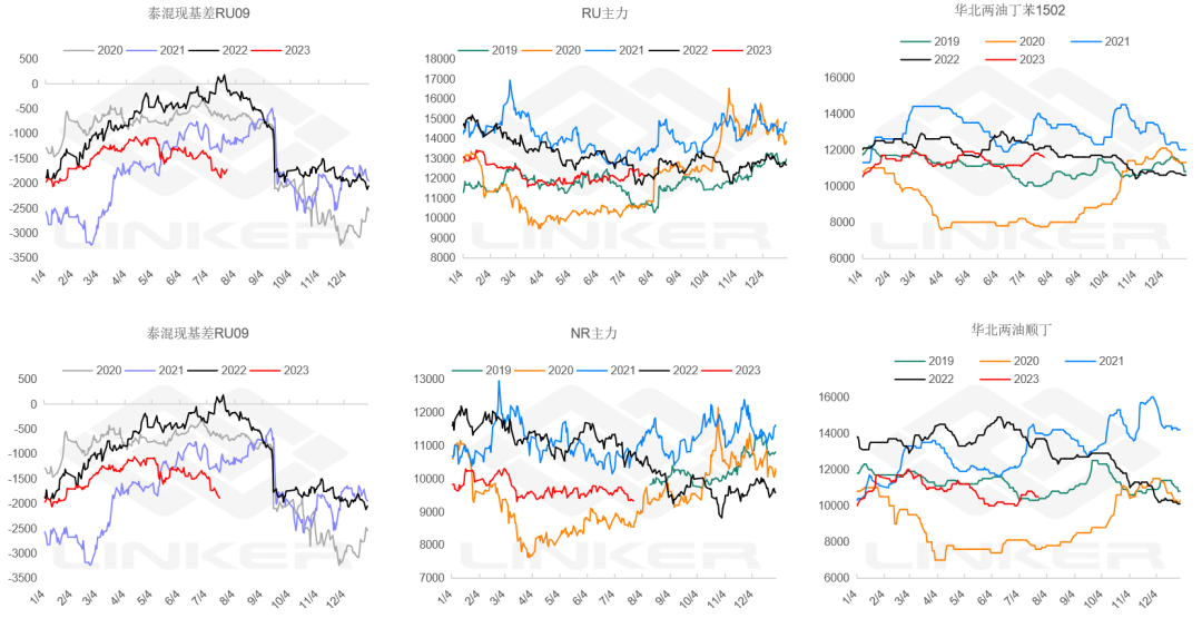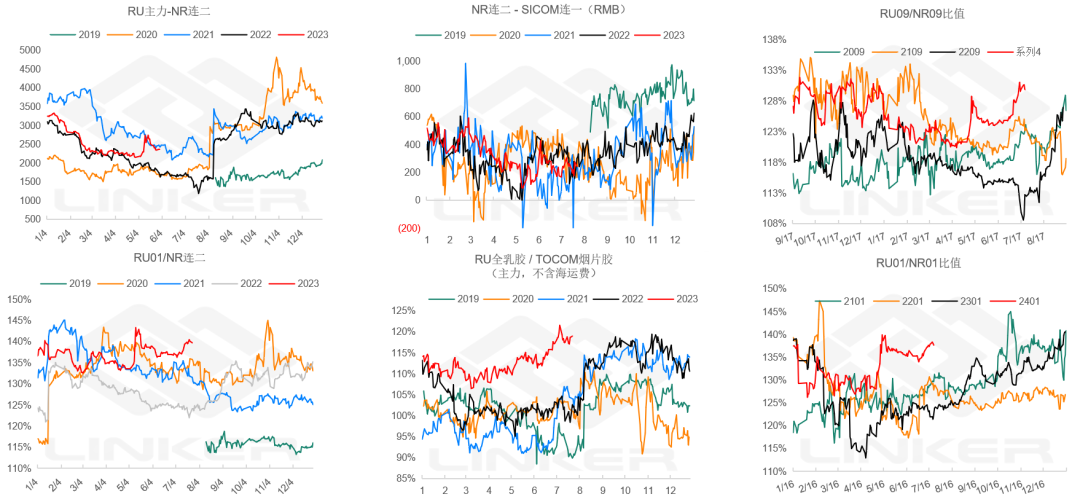 1.基差:混合对NR修复至平水附近,各类现货对RU全线走强。