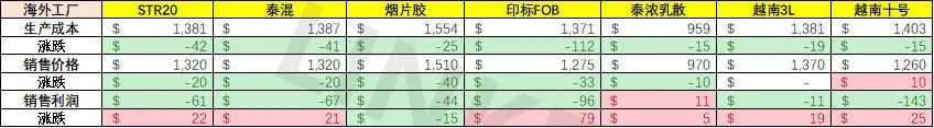 乳胶改善,其他胶种再度收窄。