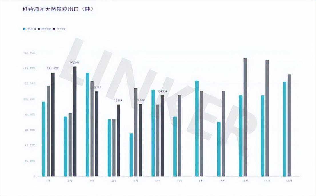 2023年上半年,科特迪瓦橡胶出口量共计678,609吨,较2022年同期的605,847吨增加12%。