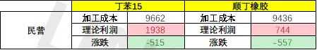 4)合成胶:本周齐翔和威特重启,浙石化和燕山柔性顺丁装置停车检修。宜邦、兰化维持检修,吉化维持低负荷运行。前期市场主要交易检修驱动和上市利好,一轮拉涨后,下游补库需求跟进乏力,价格转阴跌,对天胶也边际转弱。上游供方丁二烯和苯乙烯价格继续上调,加工利润略有压缩。