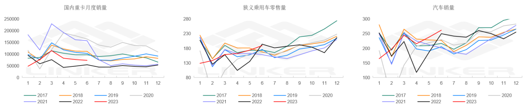 促消费政策下,乘用车恢复较好,商用车相对疲软。