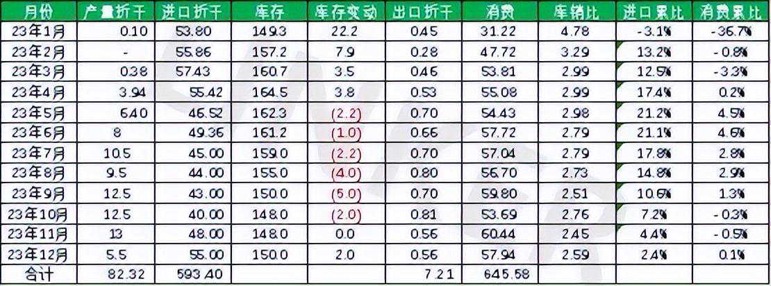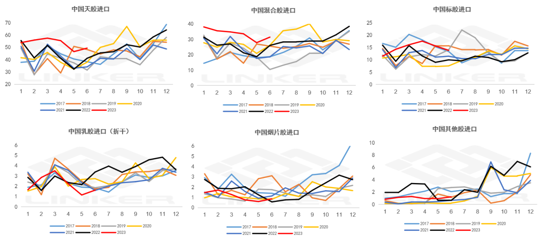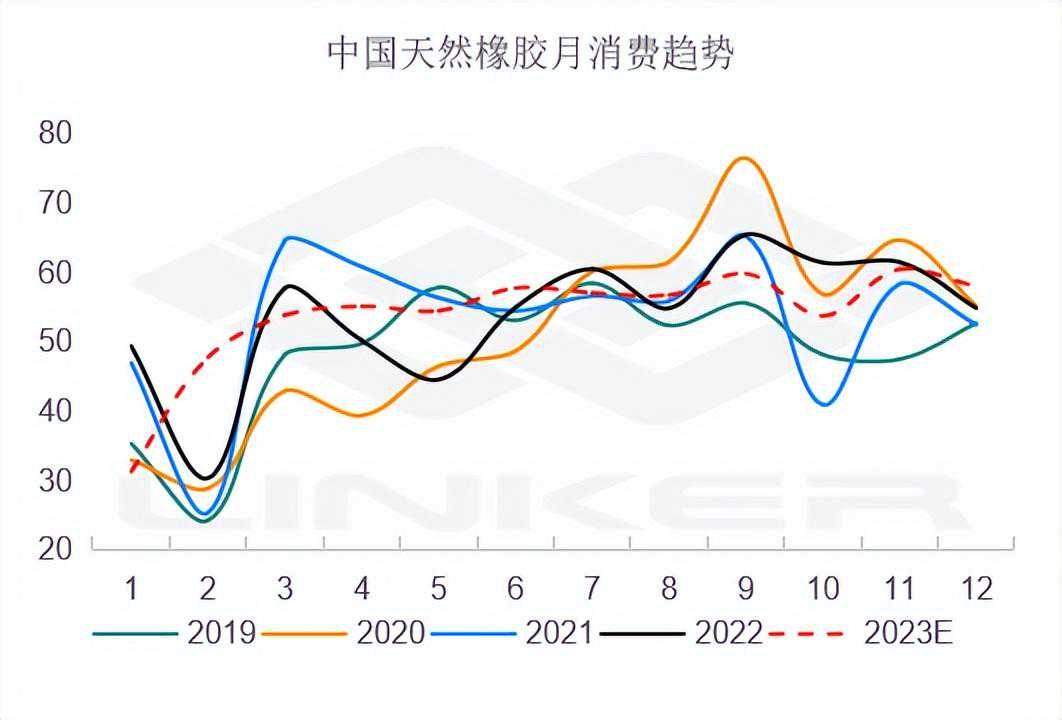 ANRPC最新发布的2023年6月报告预测,6月全球天胶产量料增1.9%至111.9万吨,较上月增加11.5%;天胶消费量料增2.2%至128万吨,较上月增加0.3%。