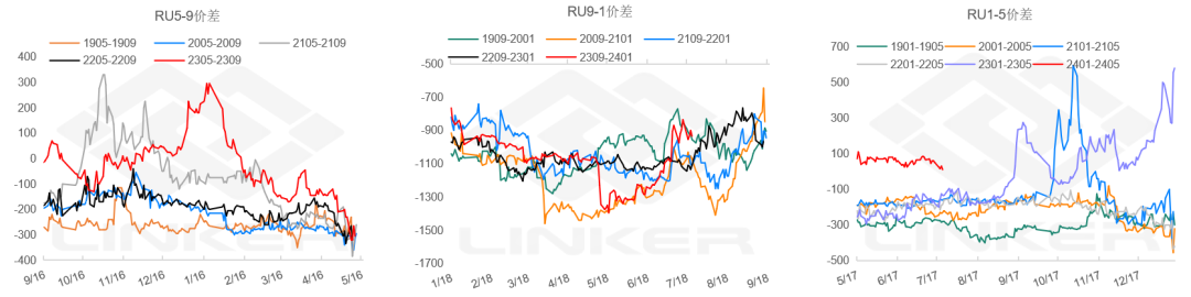 3.月差:抛储传闻再起,RU91略扩,15走平。NR近月仍偏弱。